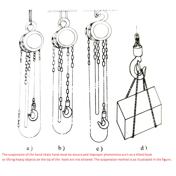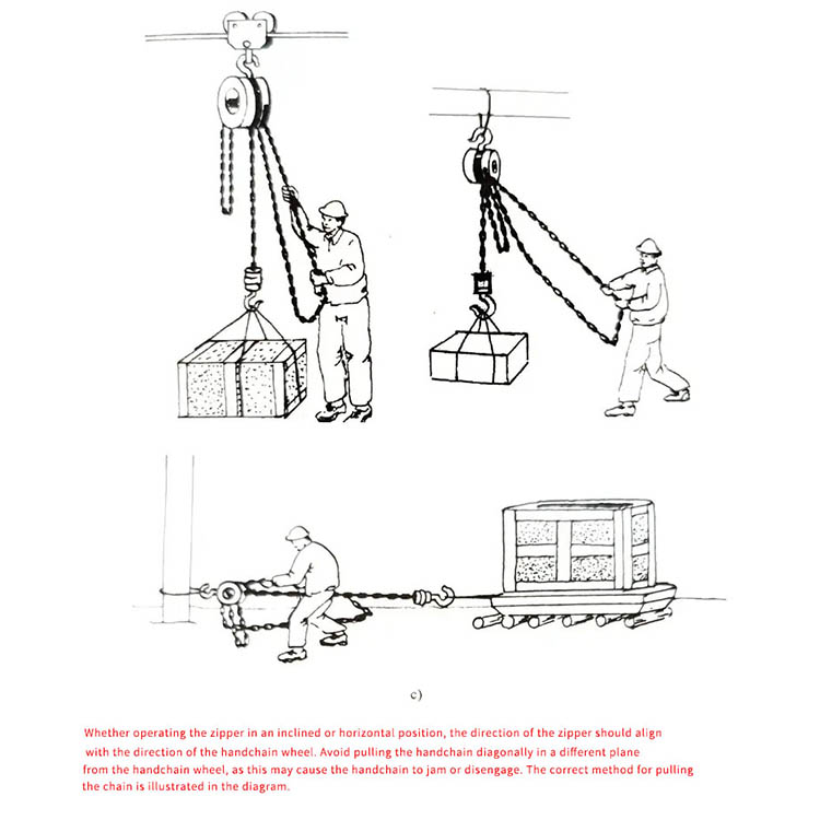 Komponentintegritet: Bekræft, at krogen er fri for revner og deformation, kæden er fri for rust og knæk, og at bremsen er pålidelig.